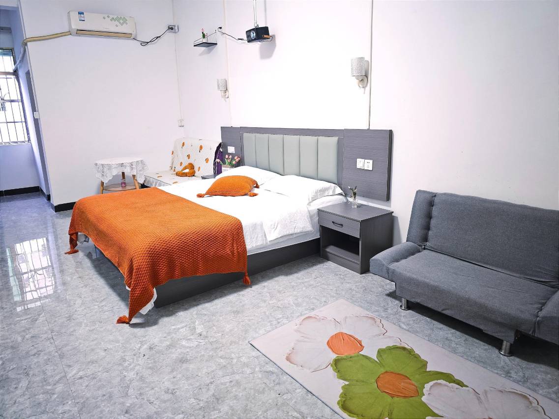 房间挺大的,有沙发有桌子,床非常的柔软,睡得好舒服。最重要是投影仪很清晰,而且快进都不带卡的 非常的流畅腾讯影视全部都是免费观看。卫生间也干净 洗护用品都齐全,交通方便走1到2分钟就到地铁站了 。 总的来说 性价比很高的 整体看着就像新装修一样的整洁