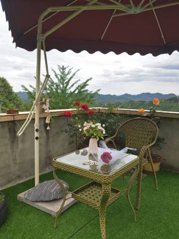 老板家位置视野很好。晚上在她家楼顶看了萤火虫,早上起来看到了日出,出行也方便,有一个小坡路,上来后还比较凉快安静,她家跑山鸡很不错也很美味。老板很热情,是一次不错的体验。