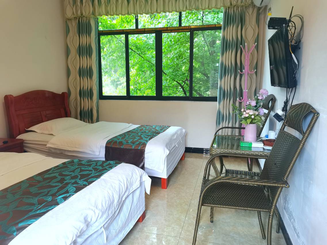 网上看了很多家才选的这个农家乐, 他家环境很好老板家的绿化很美,房间属于中等,老板确实很热情,人也好,他们家男老板炒的菜特别好吃,分量很足,出门坐车去游玩也很近,他们女儿很热情我们出去玩的时候她把游玩攻略给我们讲的很清楚,最近来玩不是很热,水没有耍成,不过整体体验很棒,值得推荐的一家。他们一家人都很和善,处的很愉快。