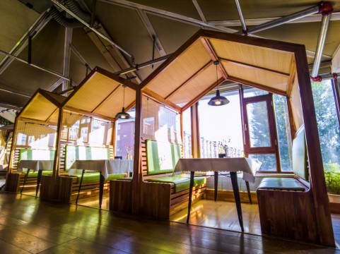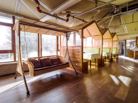 房间非常宽敞,住店客人还可以在楼下享受温泉。温泉区适度,水质清澈。前台服务很好。房间卫生条件良好,服务人员热情。餐厅装修很别致。孩子们很喜欢!!