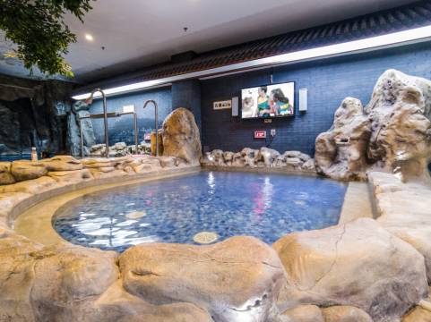 客房房间干净整洁 安静住着很舒服 楼下洗完澡还可以泡个温泉 二楼汗蒸休闲区非常不错 值得入住