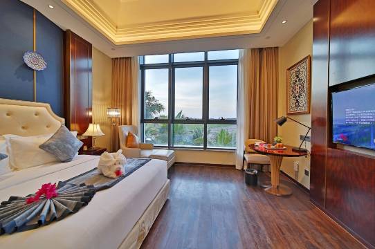 这次入住体验很好,原本预订的园景房,前台王经理贴心帮我们免费升级到了海景房,酒店整体环境不错,房间打扫得干净整洁,床品柔软舒适,睡得特别安稳。早餐也不错,非常推荐!