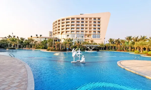 第一次来,实在太美,靠海很近5分钟就到,服务好,卫生好,餐厅饭菜味道不错,尤其客房星级酒店服务,前厅接待员也非常不错。大泳池,值得带孩子旅游,还有兔子🐰投喂,小熊非常可爱。