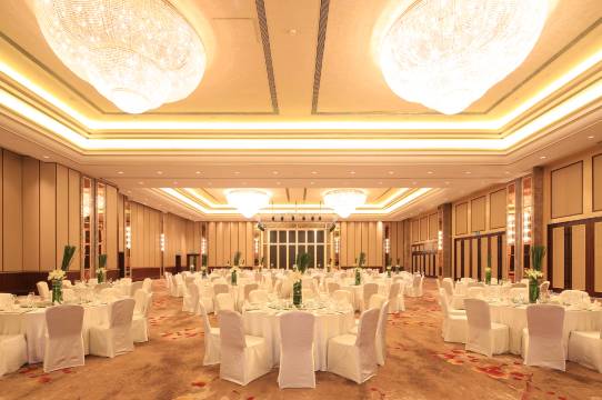 酒店提供超过1500 平方米的活动和会议空间,9 个独立的活动场地可满足不同类型的宴会及高端会议的需求。823 平方米无柱大宴会厅可灵活分隔成两个独立空间,独具特色的自然采光宴会前厅,优雅暖色调、精致的手工水晶吊灯,配以完美的舒适灯光,为宾客营造一个庄重而高雅的氛围,为宾客提供理想且灵活的宴会、会议场所。
