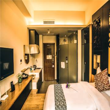 一呆公寓(抚仙湖九龙晟景)是一呆集团(Estay lnc.)旗下豪华度假公寓品牌。公寓座落于抚仙湖九龙湾,拥有1000米的风情沙滩,沿湖岸分布着各类雕塑,柔纱细腻,风情万种,这里可欣赏到美不胜收的抚仙湖风光。东方秘境抚仙湖,一个纤尘不染的琉璃世界,以超越昆明滇池12倍,超越大理洱海6倍的浩瀚胸怀,90米深蓝的包容,银滩环绕的宽阔视野,只为高尚人士敞开胸怀,生活,即是度假。宽敞时尚的套房均配有各种便利设施,包括高速上网接入、办公桌和液晶电视,让您尽享舒适住宿体验。豪华的露天私人泡池,置身其中,纵览抚仙美景,尽享闲情逸致,随时畅享星级海景SPA乐趣。