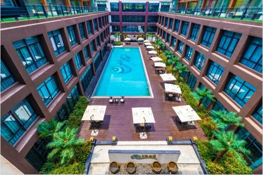 非常愉快的入住体验!做到了我很喜欢的户型,屋里干净整洁,木地板,所有的配套产品也很齐全,酒店里三楼有一个健身房四楼有一个游戏室,二楼还有一个露天泳池,特别是窗外的美景,早上一醒来听见鸟语花香,实在是太棒了,前台服务人员热情贴心,性价比真的很高,推荐给每一位出差的大家,也非常适合出游,环境高档!