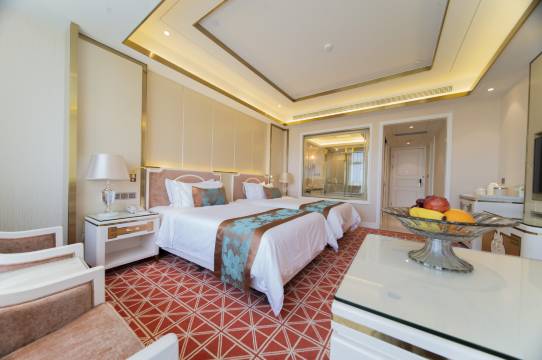 酒店为大型豪华酒店,环境幽雅、设计新颖、建筑气派,建筑面积6万多平方米,拥有各类豪华客房多间,两个超1000平方米的多功能厅,以及各类会议室、餐厅等,设施配套齐全。是会议、休闲、度假的理想场所。