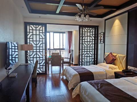 酒店在苏马荡应该是最大的,虽然设施陈旧,但卫生干净。因入住时等待时间较长,升级了景观房,视线非常好。早上阳台上观着风景,喝一壶茶,很是惬意