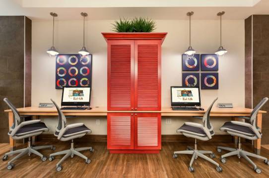 有 107 间客房提供备有大冰箱和微波炉的厨房;您定能在旅途中找到家的舒适。免费提供有线和无线上网,此外,55 英寸智能电视提供有线频道,可满足您的娱乐需求。便利设施包括电话,以及书桌和独立的起居区。