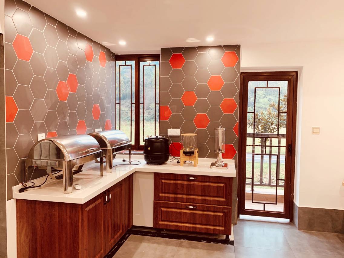 民宿以河畔水景为纽带,溪谷山麓绿荫环绕,是不可多得的清幽之地,可独享仙山之逸,大隐于市的秀美山水令人流连忘返。外部装修是“川西仿古”建筑风格,轻盈朴实,内部装修素雅大气,禅意新中式。