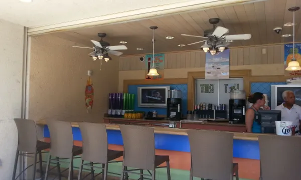泳池很棒,水质清爽宜人。有一天我们租了个小屋,价格很便宜,淡季大概25美元。所有的制冰机都在走廊尽头。虽然不是什么大问题,但我还是问了,还得告诉另一个要去其他楼层的人才能找到。也许加个指示牌会方便些。对了,他们还请了DJ,我们可以跳舞跳到天亮。哈哈!除此之外,这次住宿体验堪称完美。加油站和酒铺就在停车场,这点我很喜欢。