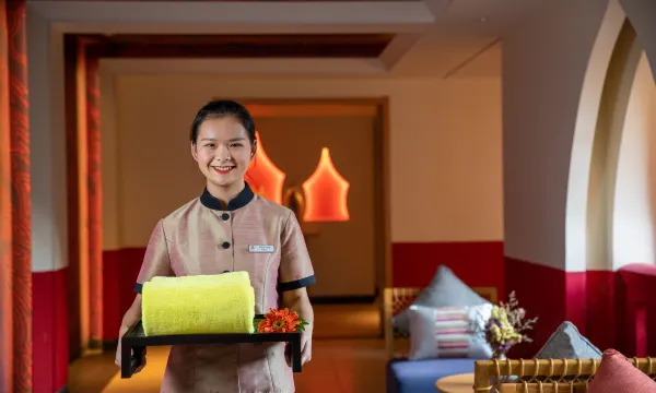 酒店配备精致客房和别墅,整体设计融入了东南亚风格,褐瓦白墙,随处可见民族元素。身处酒店就能置身浓厚民族风情,体验西双版纳独特地域文化。