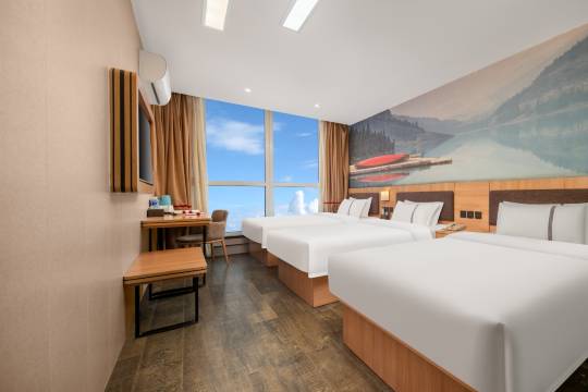 前台服务热情WIFI速度很快,有免费的停车场,交通便利,离高铁站很近,往西走500米,有吃饭的地方很繁华,房间干净整洁,客房阿姨也很热情,房间没有异味,隔隔音也好,您是干湿分离,一次性用品都有设施设备齐全,前台有耐心解决问题,主动寻求帮助,热情有礼貌,出差人首选,下次我还来住这个房间,非常推荐,住的非常满意