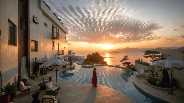 日式风,很有格调,打开窗就是海,十分幽静。这家主人有5个院子,这次呆的时间短,不然每个院子都想去感受下,还有配套的咖啡店,西餐厅以及书吧。很喜欢他们的装修。十分推荐,性价比高!