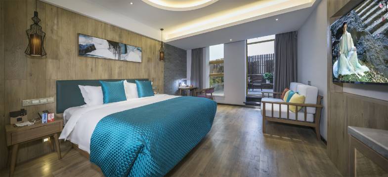 酒店网络500M光纤接入,全方位无死角、内有客房百余间,客房采用YAMAHA环绕立体声系统配合乐视互联网生态系统,让您感受全新影院级体验。