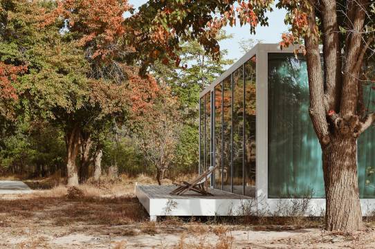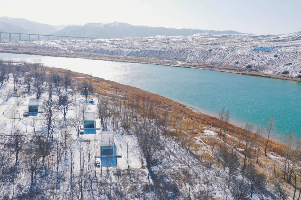 民宿是以阳光和空气结合的模块化建筑群,将清澈通透的玻璃建筑与沙漠湿地的自然景观融合,一半黄河一半沙漠的假期,为您提供焕然身心的享受。隐秘奢华的半岛民宿与广袤无垠的大漠风情,您能在此俯瞰黄河、远眺腾格里沙漠与祁连山脉,仰望星空辉映的静谧夜景,小酌几杯。在黄河沙漠之中,尽享「飞蔦集·黄河」,零距离感受漠野星光。