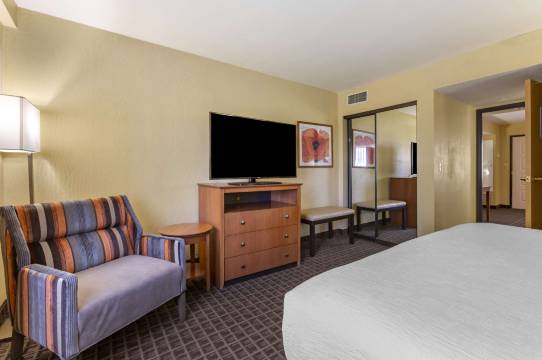 酒店位置对我们来说非常方便,就在斯科茨代尔机场旁边,可以看到飞机降落,但酒店里一点也不吵。房间是个套房,非常大。小厨房很棒。这次住宿最棒的部分是丰盛的免费早餐。负责早餐的两位工作人员(一男一女)让我们的住宿变得美味无比。自制的柠檬蛋糕和肉桂卷简直是人间极品。早餐还有浓汤和肉汁、火腿、麦片、新鲜水果等等。我们肯定会再来的。谢谢!