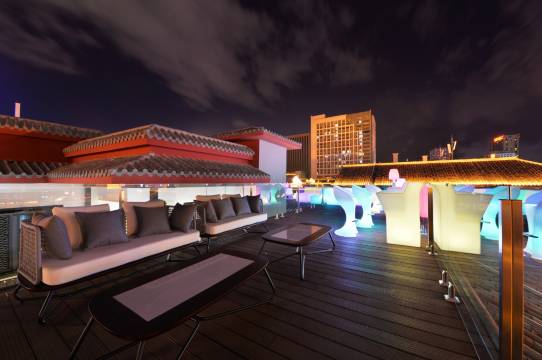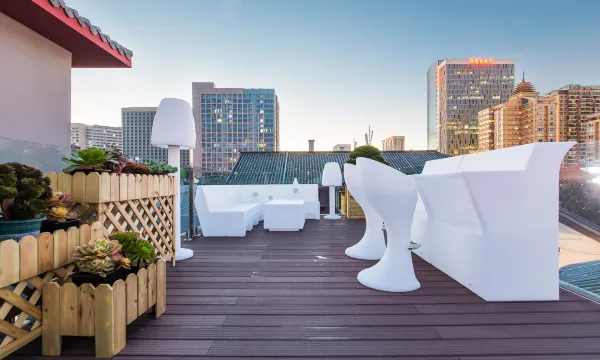 三楼露台为一处完美的网红打卡地,喝茶会友、赏月高歌并且可以欣赏到十几个品种的多肉植物,夜间在天台上以金马碧鸡坊和整个昆明城的霓虹灯为背景,在这可留下您最美的身姿。