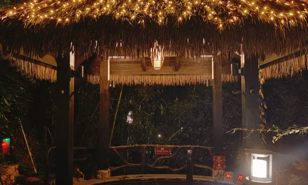 温泉池区更是惊喜!十几种特色汤池错落分布,玫瑰池、艾草池、碳酸池...泡在温热的泉水中,看热气氤氲在绿植间,疲惫感瞬间被驱散。水温把控精准,池边还贴心配备毛巾和茶饮,细节满分!
