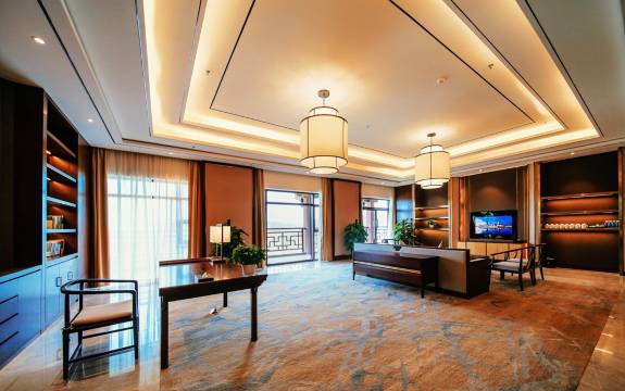 山庄系广西贺州市旅游实业集团有限公司旗下高端园林式酒店,坐落于风景秀美的贺州市园博园内。园内植被茂密,绿草茵茵,荷花池碧波荡漾,风雨桥古典风韵,长寿阁沉稳大气,其景如画,独具神韵。酒店为中式复古汉唐风格,按星级标准设计及建造。酒店有山景房/园景房/亲子主题房/商务套房/总统套房, 共155 间;另设有全日制餐厅、中餐厅、商务中心、宴会厅、康乐中心等服务设施,为来宾的商务、政务及度假休闲娱乐活动提供了最舒适、安全的环境,国际标准的个性化的服务更能彰显精英人士的非凡身份,给宾客营造一个温馨、尊贵的私享空间。