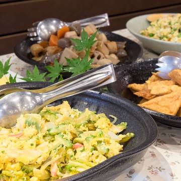 晚餐很棒(日式料理),但早餐很简单(面包、咖啡、果汁、水煮蛋)。