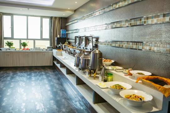 酒店早餐在7楼,8:30-10:30供应中式自助早餐,除了咖啡机不是很高档的三合一咖啡饮品机具。其他价格方面绝对便宜而且无论从质量和数量方面来说都是可圈可点,超乎寻常的满意😀从用餐人数我和入住率来看就知道仍旧是莎车县城老城区里叫好又叫座的不二之选的首选之地。
