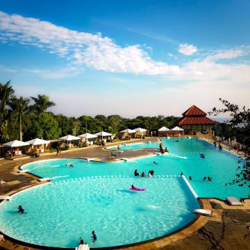 泳池的景色很美,还有ATV和其他游玩的地方。住宿也很舒适,宽敞干净,还可以烧烤。服务也很好,员工都很友善。