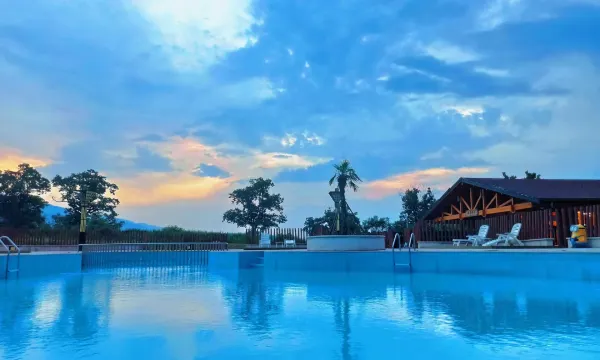 从宝鸡回家路上,到华山脚下歇歇脚,于是订了这个露营地的民宿,我们定的帐篷亲子房,因为入住当天后半夜有大雨,民宿免费给我们升级了独栋小木屋,有两个房间,很方便。整个露营地的环境很好,有篮球场、网球场、游泳池,就在华山脚下,去景区也方便。