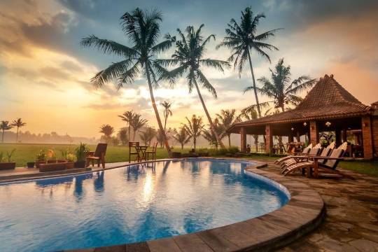 酒店坐落在稻田之中,环境优美,可远眺默拉皮火山,旁边还有一座寺庙。提供美味的当地食物,员工和服務都非常棒。虽然设施比较基础且富有乡村气息,但非常宁静祥和。