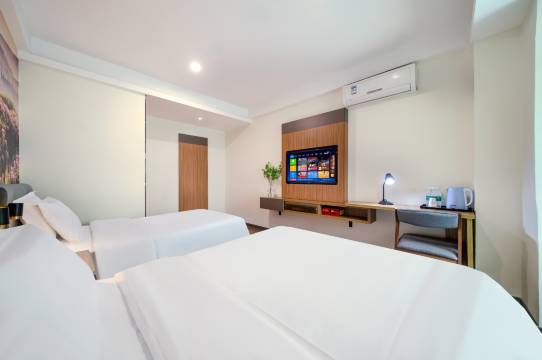 房间干净宽敞,床特别舒服,窗户透光好。浴室热水充足,洗漱用品质量不错,工作人员态度友好,有问题马上解决