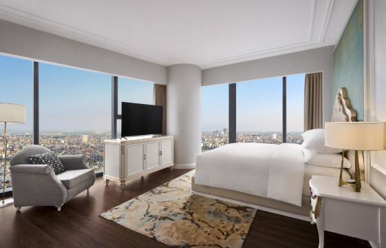 楼层高,落地窗可以180度一览无余城市美景,工作人员会说中文,态度很好,很好的居住体验,可以累积万豪积分