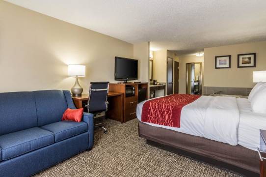 有 62 间客房提供冰箱和微波炉;您定能在旅途中找到家的舒适。带有有线频道的 25 英寸平板电视可满足您的娱乐需求;同时提供免费无线网络,方便您与朋友保持联系。浴室提供免费洗浴用品和吹风机。便利设施包括可存放笔记本电脑的保险箱和书桌,以及带有免费市内通话的电话。