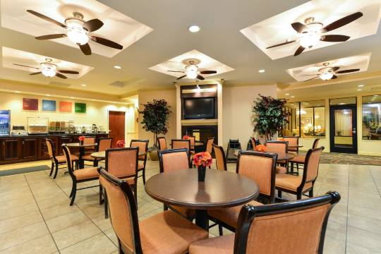 有 70 间客房提供冰箱和微波炉;您定能在旅途中找到家的舒适。您的加厚层卧床备有高档床上用品。免费提供有线和无线上网,此外,32 英寸液晶电视提供有线频道,可满足您的娱乐需求。配备淋浴/盆浴组合的私人浴室提供**洗护用品和吹风机。