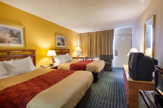 有 97 间客房提供冰箱和微波炉;您定能在旅途中找到家的舒适。带有有线频道的 32 英寸平板电视可满足您的娱乐需求;同时提供免费无线网络,方便您与朋友保持联系。配备淋浴/盆浴组合的私人浴室提供免费洗浴用品和吹风机。便利设施包括书桌,以及带有免费市内通话的电话。