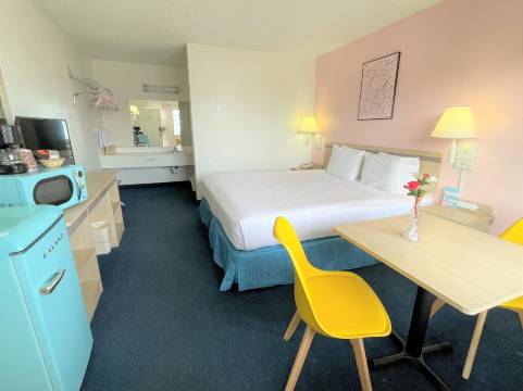 有 72 间空调客房提供冰箱和微波炉;您定能在旅途中找到家的舒适。带有有线频道的平板电视可满足您的娱乐需求;同时提供免费无线网络,方便您与朋友保持联系。浴室提供淋浴/盆浴组合和免费洗浴用品。便利设施包括茶具/咖啡用具,而且每天提供客房服务