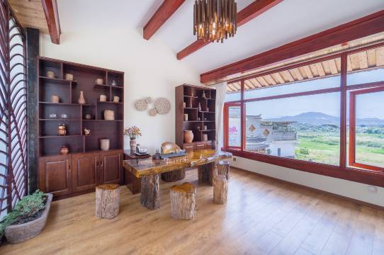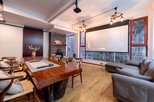 客栈拥有公共区域:天空之境天台花园,不仅是拍照的胜地还可以观赏各种花果多肉等植物,超大飘窗的观景茶室,可一家人品这香茗赏着荷塘湿地美景。一楼配置酒吧,咖啡厅、餐厅。二楼书吧,可以烤着壁炉静静地看书,有投影设备,可以观影或者开临时会议。还拥有健身器材、瑜伽房等设施设备。