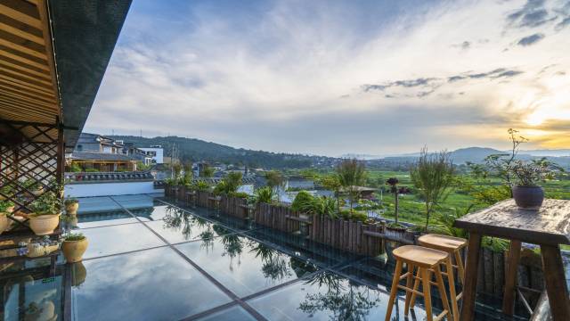 坐在露台上,什么也不用做。只发呆,只看着近处的花和远处的山,只需要跟随着云朵流动的频率呼吸,就是幸福。静下来,才能耳聪目明。静下来,不辜负腾冲的每一个负氧离子,让充足的氧气贯穿所有内脏,让气血舒展顺畅。这个客栈,就是这样一个能让你静下来的地方。傍晚披着夕阳,沿着小路散步,走过野鸭湖,到达古镇最人流集中、最热闹的地方,全程也就大约750米。客栈位于数数书局附近,离景区东北入口很近,交通很方便,客栈门前就有停车场。