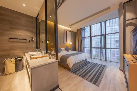这次入住非常满意,前台服务热情高效,还贴心提醒我们附近的美食。房间比想象中要大,干净整洁,装修风格轻奢风格,拍出来的照片美美哒,最惊喜的是早餐,品种多,还是现点现做的,性价比超高的一家酒店,下次来一定会再住。