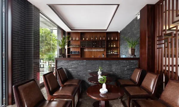 《凤凰山水莲心酒店》的大堂吧融合了、茶室、水吧和360°观景露天大阳台,搭配原木家具和绿植装饰,营造出禅意与轻奢并存的氛围感,酒店服务还提供自制特色下午茶。