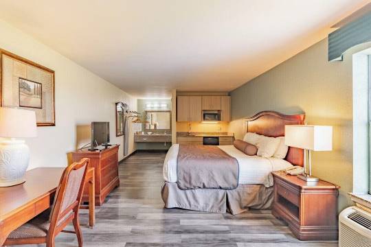 有 42 间空调客房提供冰箱和微波炉;您定能在旅途中找到家的舒适。带有数码频道的 32 英寸LED 电视可满足您的娱乐需求;同时提供免费无线网络,方便您与朋友保持联系。浴室提供淋浴/盆浴组合和吹风机。便利设施包括保险箱和书桌,以及带有免费市内通话的电话。
