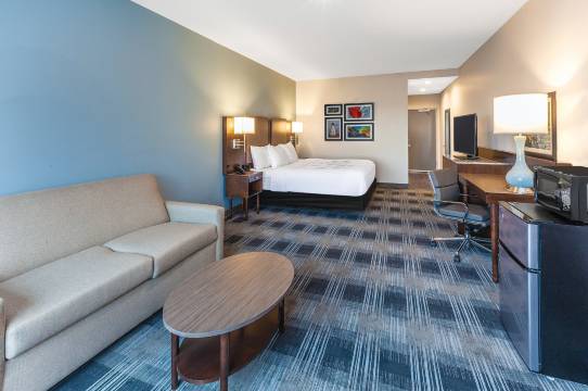 有 85 间空调客房提供冰箱和微波炉;您定能在旅途中找到家的舒适。您的客房备有加厚层卧床。免费提供有线和无线上网;带有有线频道的LED 电视可满足您的娱乐需求。浴室提供免费洗浴用品和吹风机。