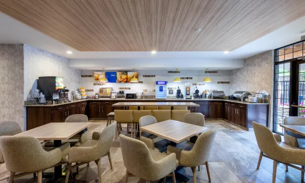 您可以到服务常绿大道金西凯富全套房酒店住客的小吃吧/熟食店随便找点吃的。包含免费的自助早餐。