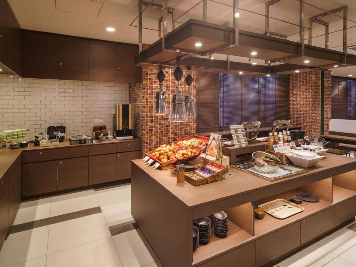 酒店包含自助早餐,种类还可以,有米饭类和面包类,就是时间有点早,八点半就结束了,可以提前到寄存行李,下午开始有酒水饮料提供,有温泉可以泡,交通很方便,旁边100米就是jr站和江之电。