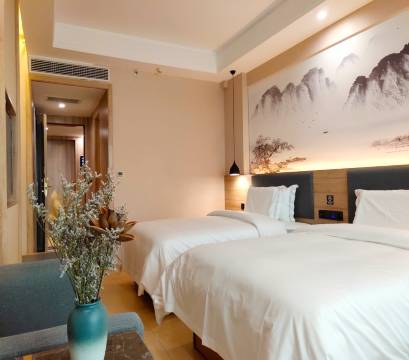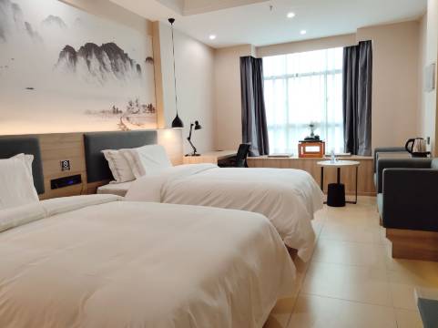 酒店注重宾客入住体验感,沙发座椅横向并排,新颖大气,多功能隐形插座,实用美观,一键智能灯光开关,化繁为简,洗漱用品以桔梗为原材料,健康环保。整墙落地玻璃,悦尽城市芳容,更多贴心之处等您来体验。
