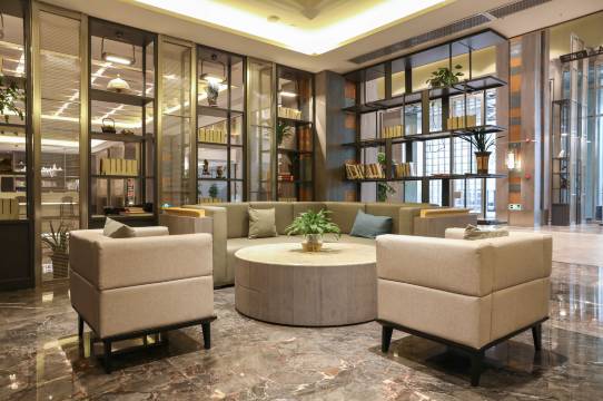 这个酒店的大堂挺有艺术感的 茶香清雅。前台小姐姐服务热心周到 得知我的睡眠质量不太好 特地给我安排了朝东的安静房间。房间里的装修陈设新颖大气 看着就很舒服,在外面住得最舒心的一次了。