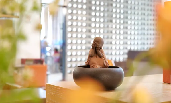 酒店装修简约、时尚,满眼都是艺术装置、设计师定制家具、手工园艺、原创画作、各类图书、名家茶具等。