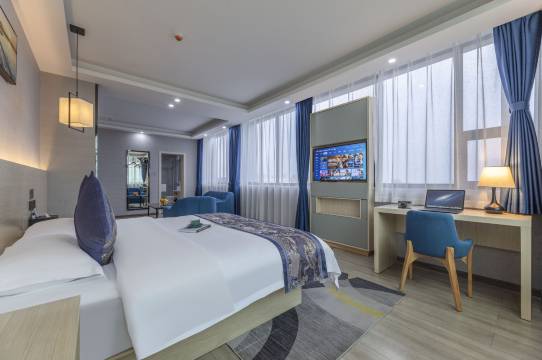 酒店位于绍兴袍江国际财富中心商业综合体,紧邻大润发购物中心,美食一条街,地理位置佳,店门口有多个停车位免费的,酒店对面还有很多带编号限时免费停车位(免费时间晚上7点~早上7点),近绍兴2号地铁站(袍谷站),沪杭甬高速,绍兴高铁北站、萧山国际机场也很,至鲁迅故,抵达繁华的市中心、世茂新城均在20分钟左右车程。酒店楼高7层,拥有各式舒适的客房,更有贴心的服务,给您带来美好的住宿体验。酒店也在不断的更新中,店内设施设备及用品随时会有所更改,旨在为顾客带来更好的入住体验,与平台上显示的信息会有所出入,具体以当天入住为准,敬请谅解。