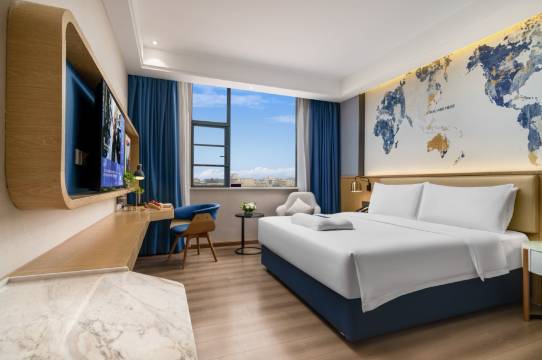 欧洲第二大酒店集团卢浮集团旗下中高端商旅品牌,是一个活力、积极向上、充满浪漫主义的国际中高端商旅品牌,客房体验涵盖:洗浴产品来自500强子公司提供的奢华高端洗护品牌、全棉高织床品、凝胶记忆枕、挂耳咖啡、景田矿泉水、30分钟消毒口杯、净化水壶、USB充电接口、调节式床前灯、客房香氛、舒适牙具系列。