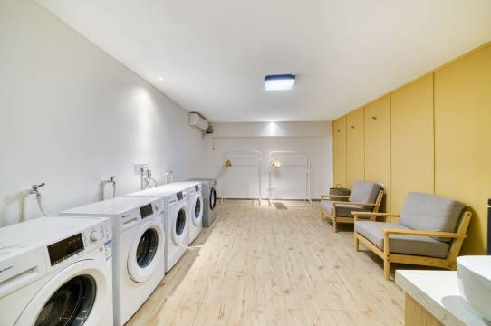 房间有冰箱和洗衣机,设施齐全,虽然能看出来房间有点老旧,但是挺干净的。