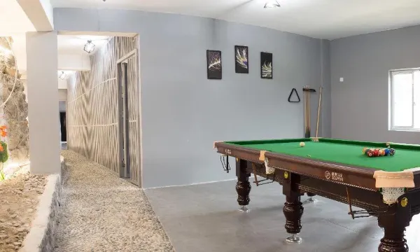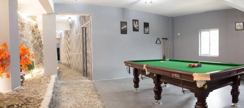 隐于流世民宿包括玻璃鱼池下午茶餐厅,开放式大厨房,西式大长桌餐饮区,休闲大客厅,投影幕布以及设备,二楼的书房,茶饮区,以及娱乐区麻将室,台球室,桌游会议室,ktv,小型游戏机,健身器材,楼顶戏水池以及后花园休闲烧烤区(180平方)等等合计全部1900平